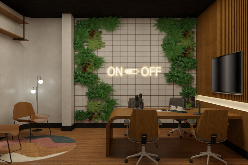Espaço de trabalho compartilhado por profissionais de diversas áreas.